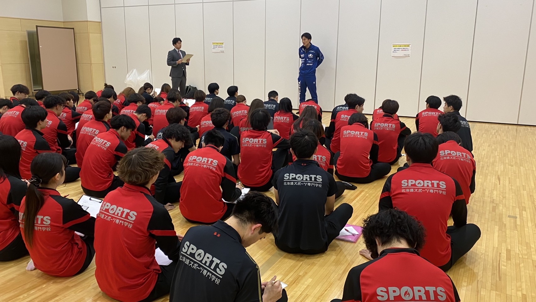 道スポと提携しているプロバレーボールチーム「北海道イエロースターズ」が試合を主催している北ガスアリーナ札幌46へ、スポーツトレーナー学科・スポーツ健康学科の1年生が見学実習に行ってきました!