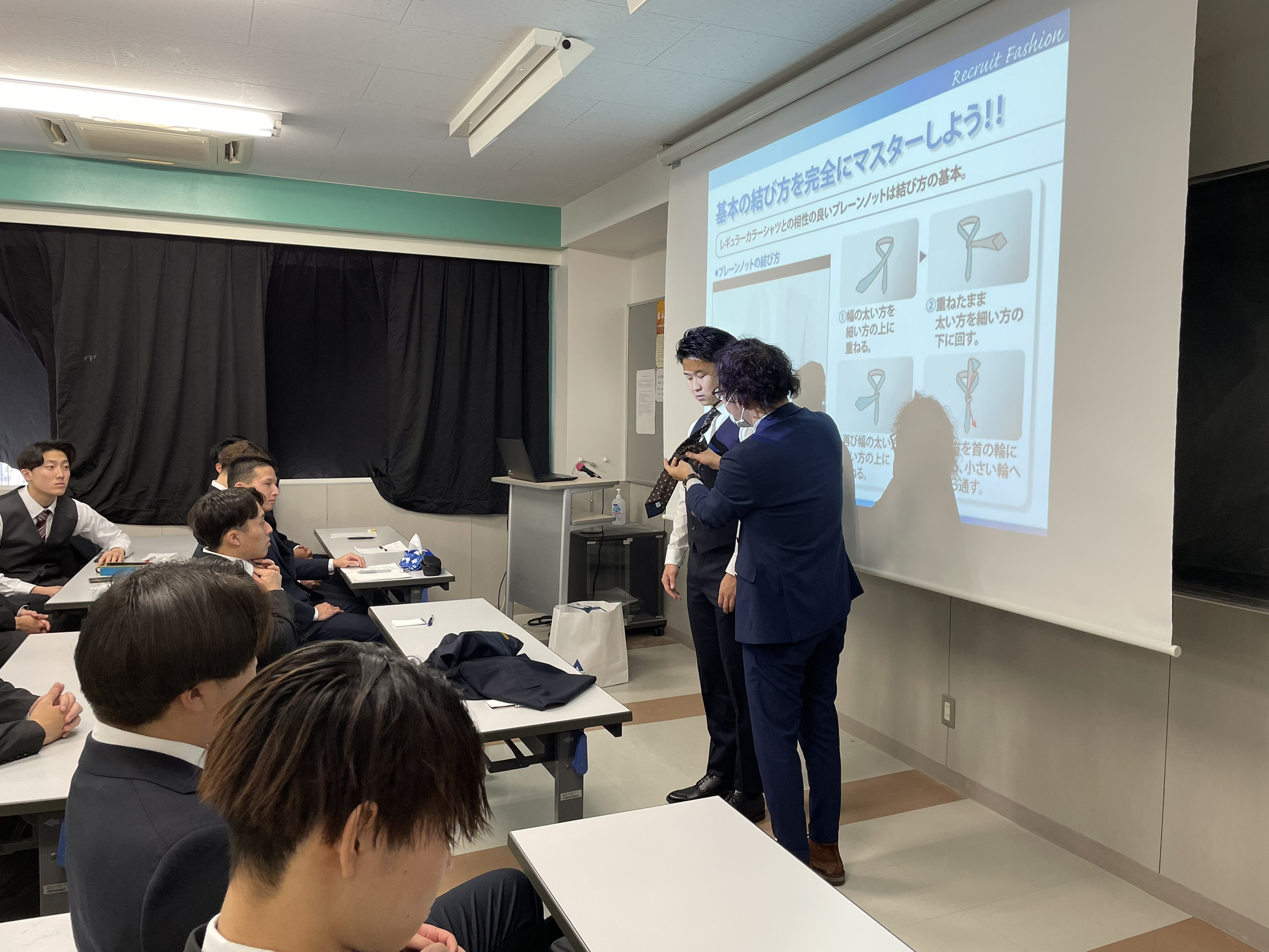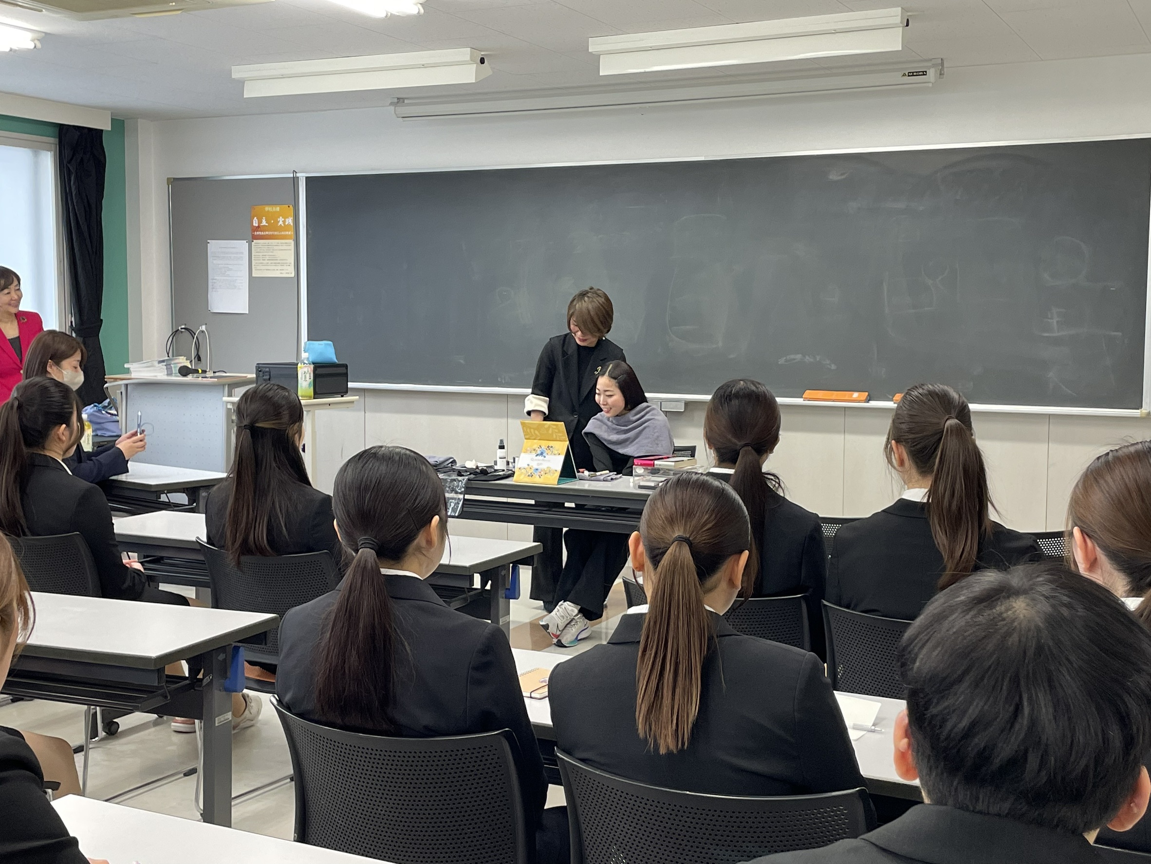 今回は、洋服の青山様やサキナ様にお越しいただき、身だしなみや就活用メイクについて講座を行いました!